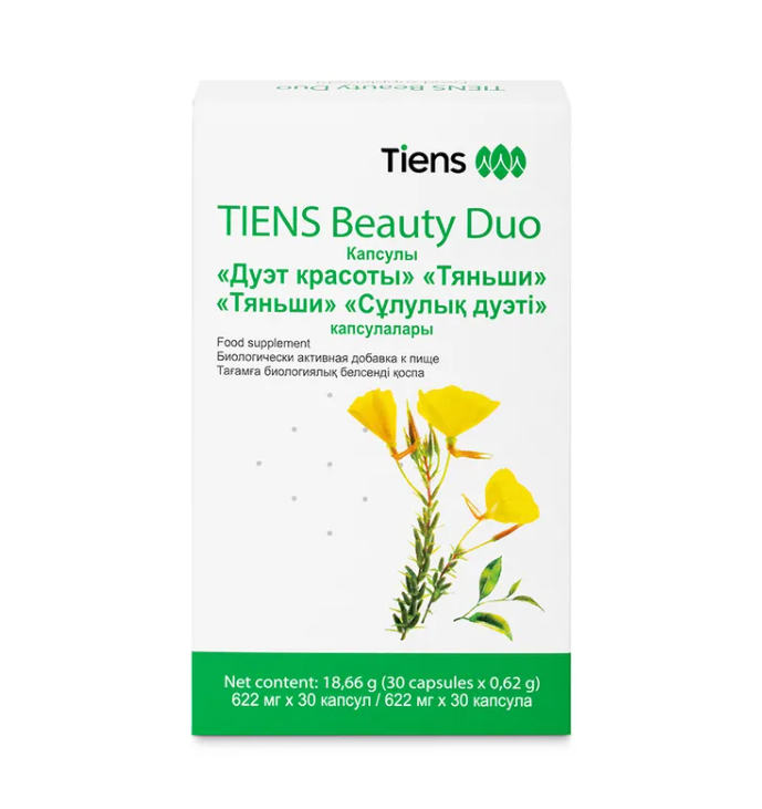 Целебная смесь из трав и цветов, Дуэта Красоты Тяньши, предназначенная для сохранения молодости и красоты, поддержания жизненных сил и энергетического метаболизма. Основной элемент - масло примулы вечерней, содержащее уникальные линолевую и гамма-линоленовую кислоты...
