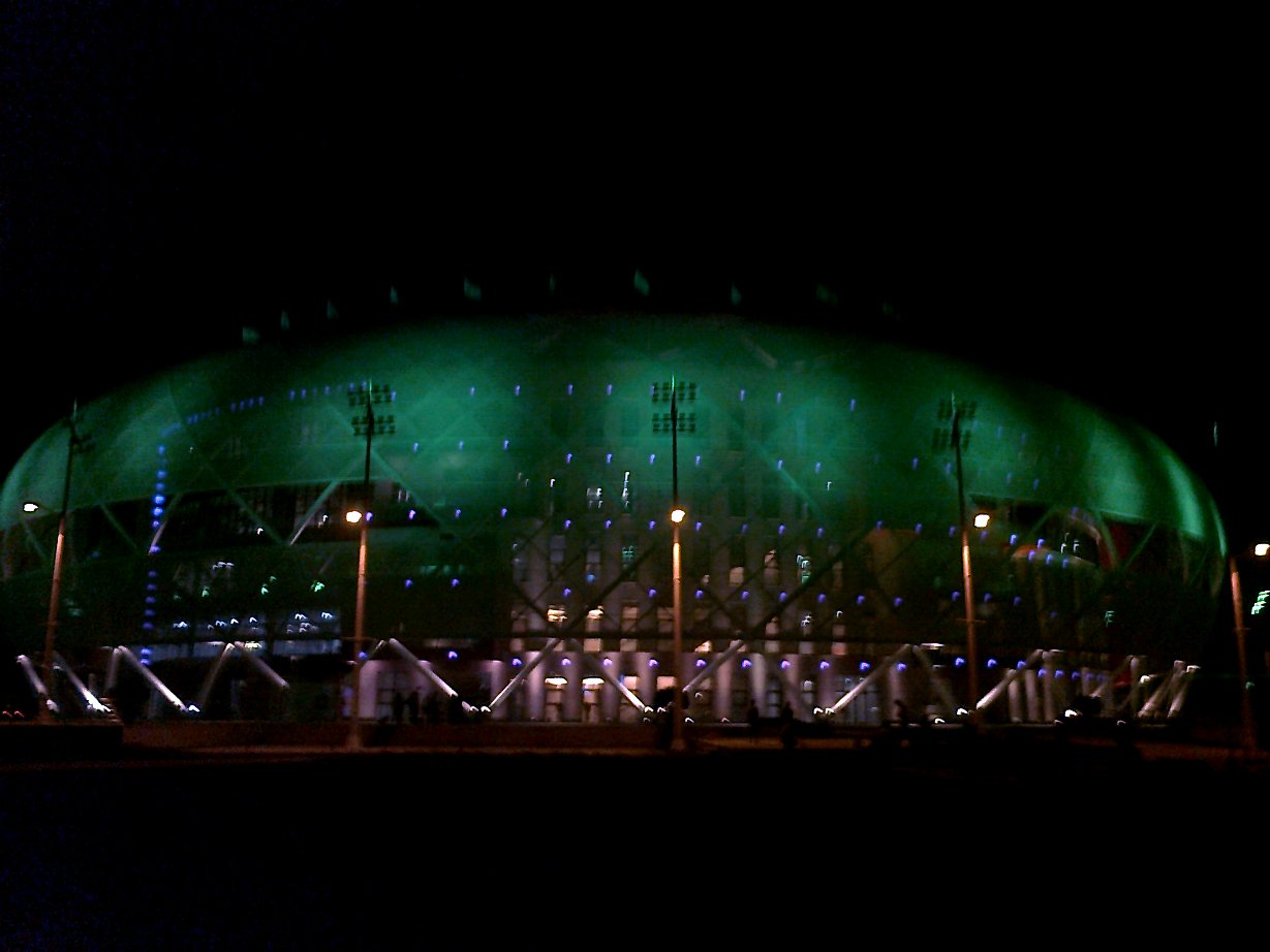 Ночной вид конференц зала, освещение все время меняется.